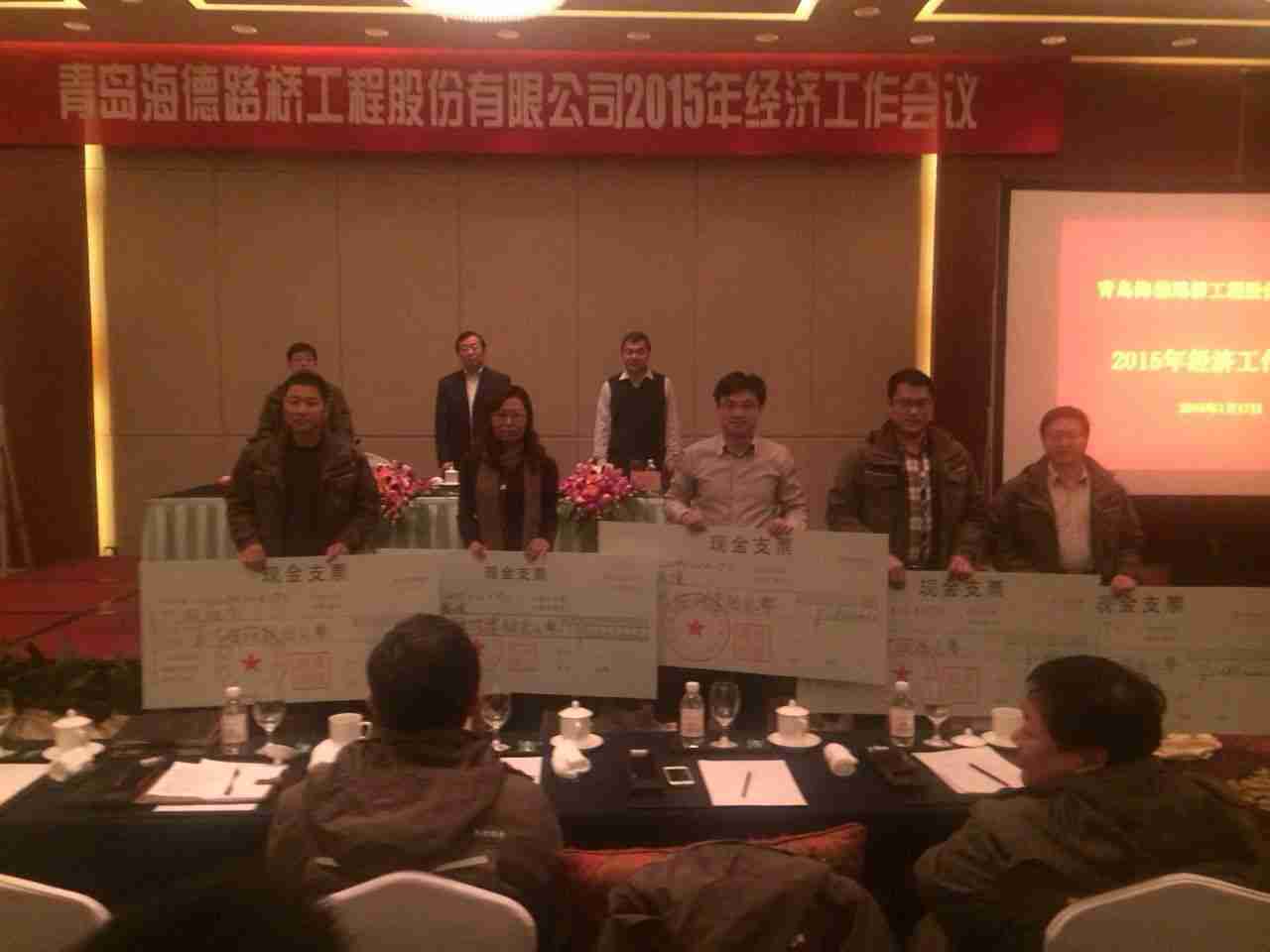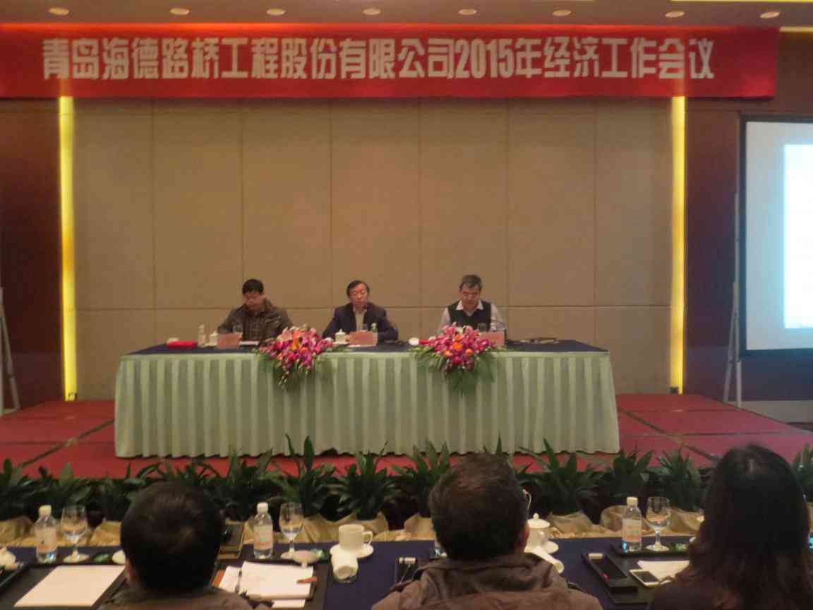 2015年1月17日上午,青島海德路橋工程股份有限公司2015年經(jīng)濟工作會議在海景花園大酒店綜合樓會議廳順利召開。公司董事長黃佳高、總裁鞏光磊出席并分別發(fā)表重要講話,公司各部門、分公司共100余人參加,公司工會主席、副總裁呂同占主持會議。