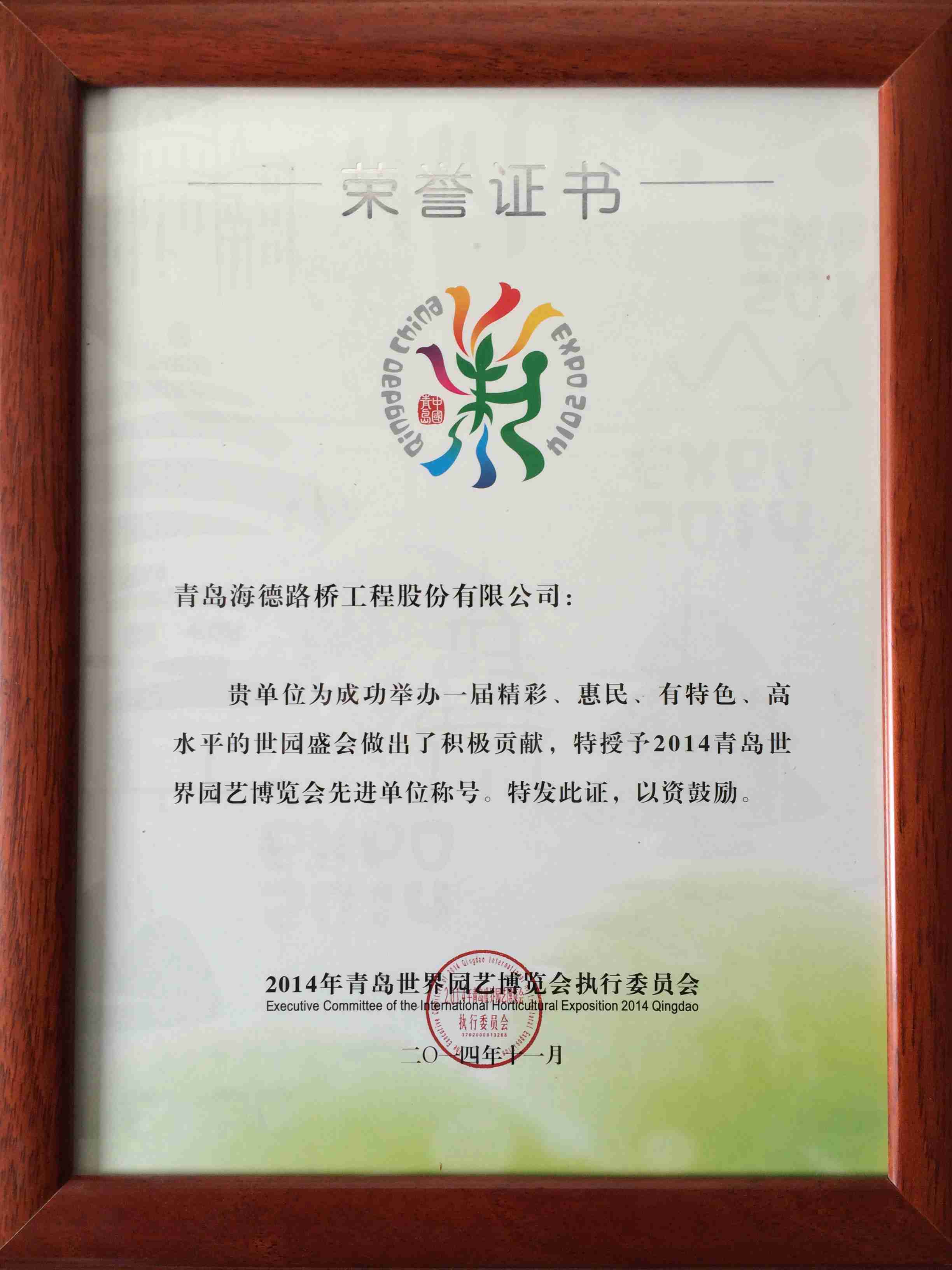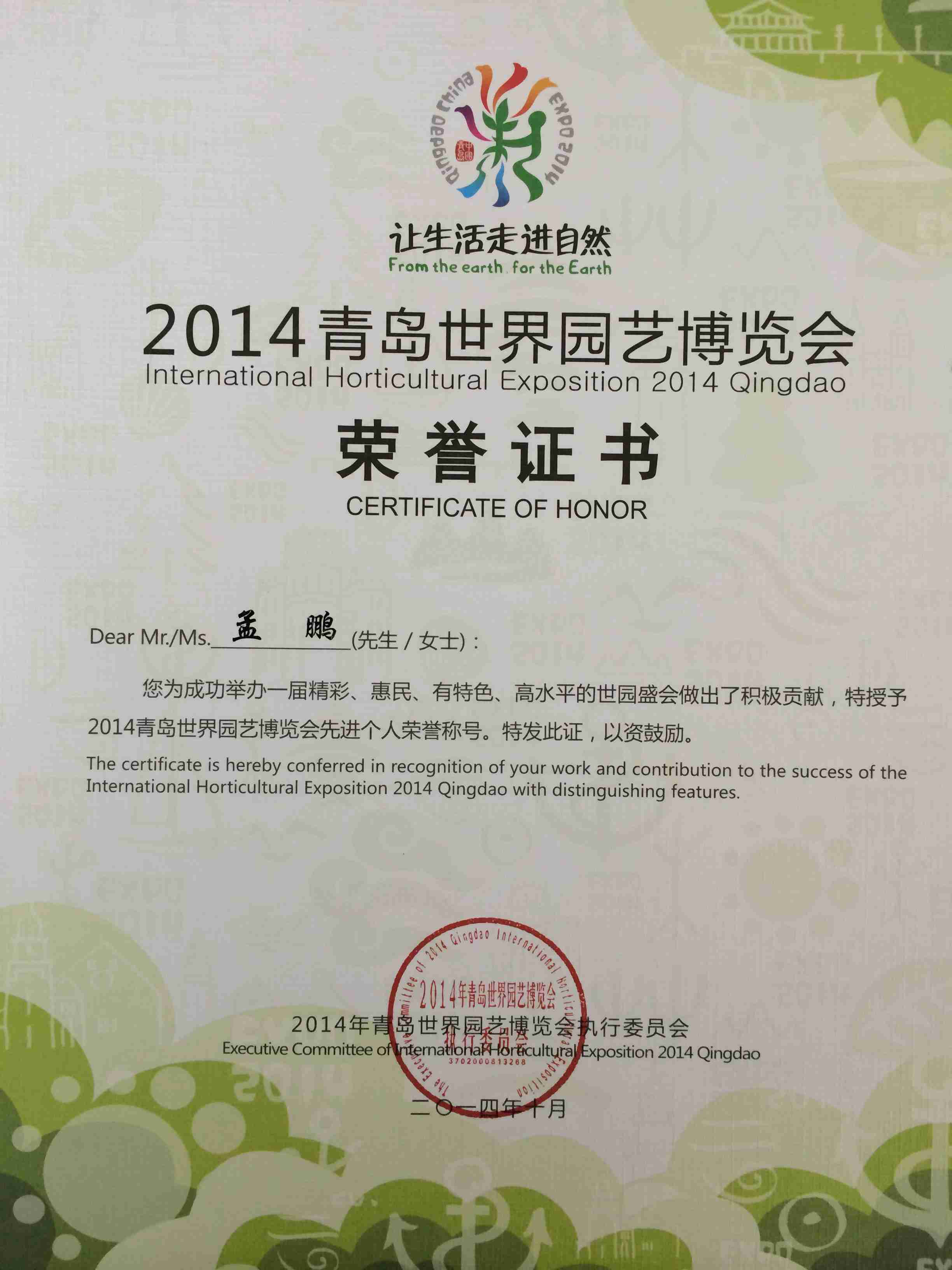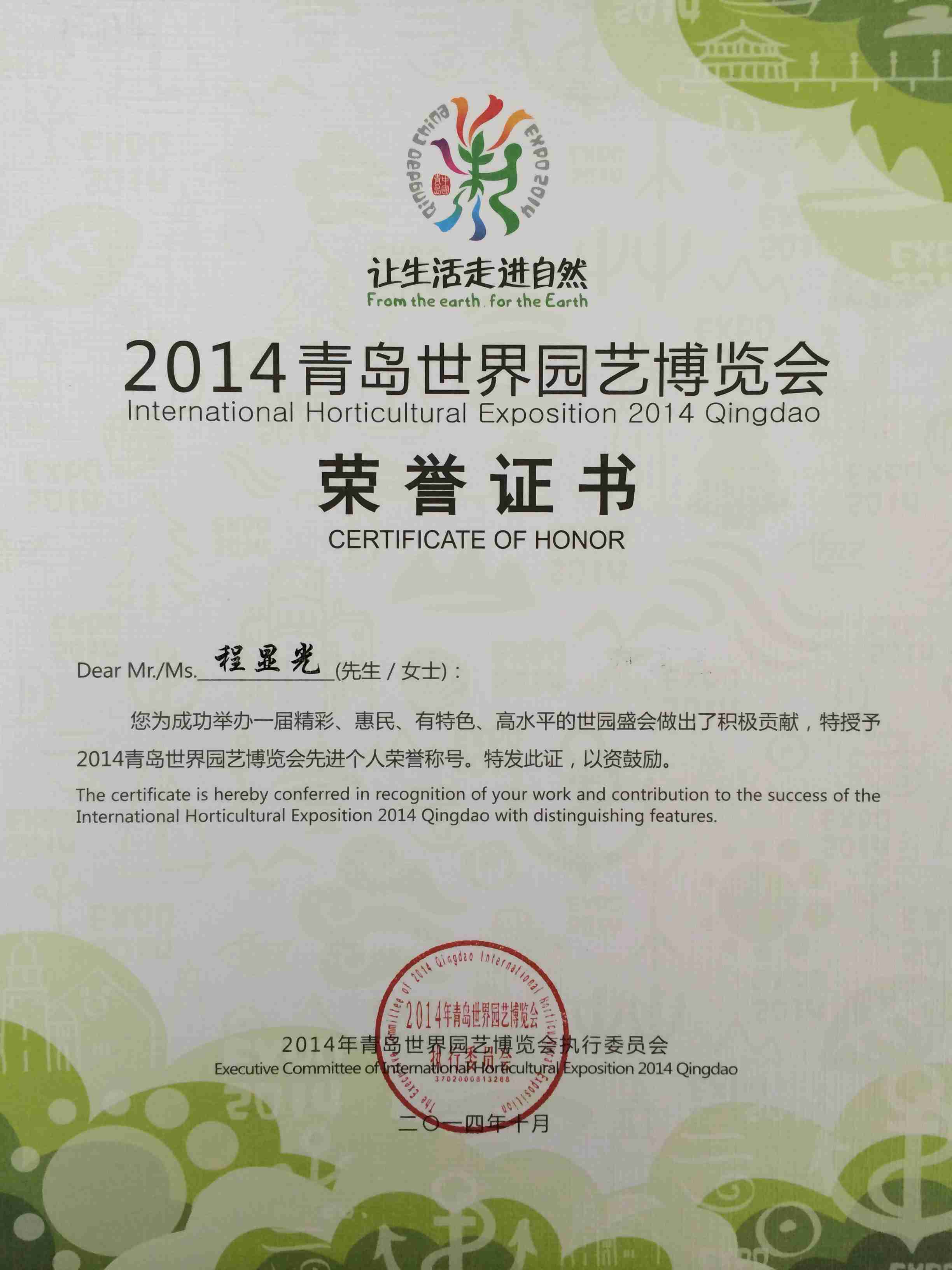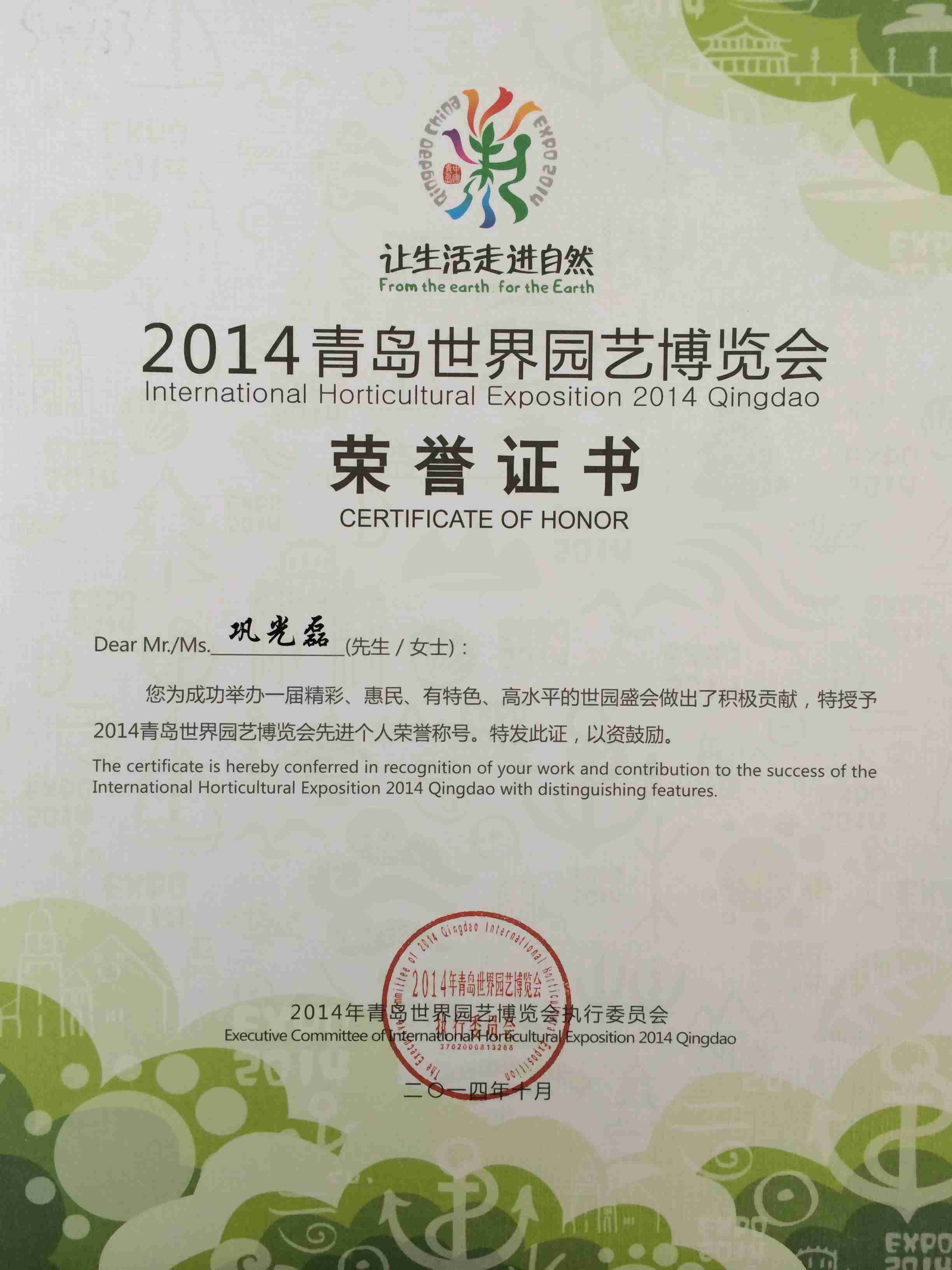 本次評(píng)選活動(dòng)由2014年青島世界園藝博覽會(huì)執(zhí)行委員會(huì)主辦,表彰直接參與青島世園會(huì)籌建、招展和運(yùn)營(yíng)工作中作出積極貢獻(xiàn)的先進(jìn)單位和先進(jìn)個(gè)人。這兩個(gè)獎(jiǎng)項(xiàng)的獲得是對(duì)我公司所做貢獻(xiàn)的充分肯定。