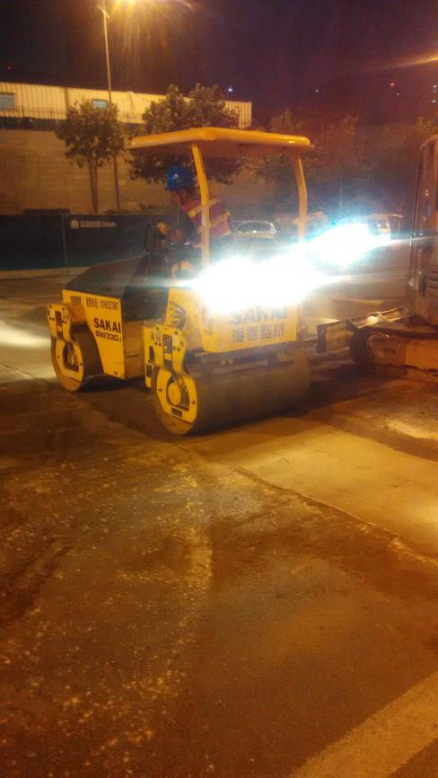 因本施工段為汽車東站與青蘭高速出口交匯處,車流量較大,為保證交通暢行及施工安全,公司機械物資部安排夜間施工,科學制定調(diào)流計劃,積極做好安全防護,采取半幅施工、清淤換填方案。為確保路面及時恢復,施工中嚴格按照市政規(guī)范要求,采用干硬性二灰碎石骨料,回填36cm并分層壓實,達到施工精度和壓實度后,及時噴灑乳化瀝青油并進行瀝青混凝土(AC-10)攤鋪及壓實。經(jīng)過機械物資部人員的共同努力,兩天時間便高質(zhì)量完成所有過路溝槽恢復,得到了嶗山區(qū)市政公用局領導的肯定和表揚。