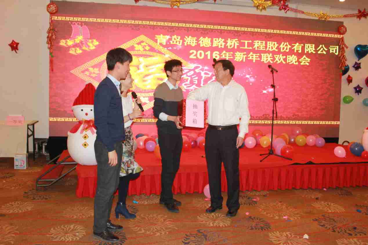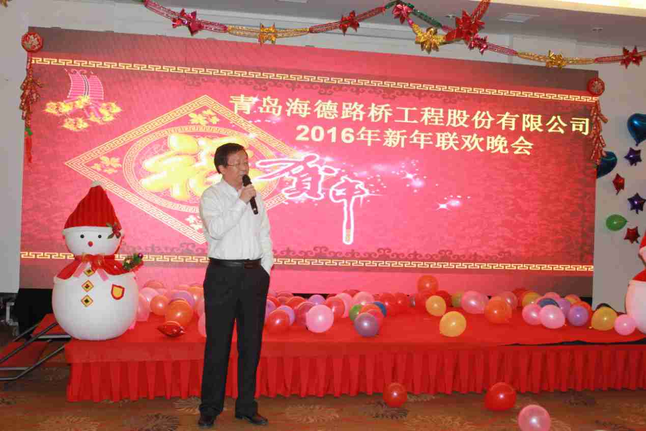 2015年12月31日晚,青島海德路橋工程股份有限公司2016年新年聯(lián)歡會在東方之星大酒店鉆石廳隆重舉行。公司董事長攜管理層與全體同仁歡聚一堂,喜迎新年。