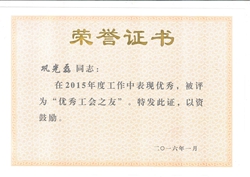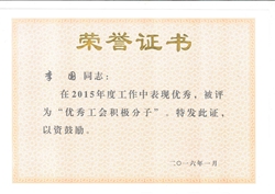 3月12日,青建集團(tuán)工會(huì)2016年工作會(huì)議成功召開(kāi),經(jīng)集團(tuán)股份公司工會(huì)委員會(huì)評(píng)選,授予我公司工會(huì)委員會(huì)“青建集團(tuán)2015年度先進(jìn)職工之家”,鞏光磊“青建集團(tuán)2015年度優(yōu)秀工會(huì)之友”,賈濤“青建集團(tuán)2015年度優(yōu)秀工會(huì)干部”,李國(guó)“青建集團(tuán)2015年度優(yōu)秀工會(huì)積極分子”等榮譽(yù)稱號(hào)。