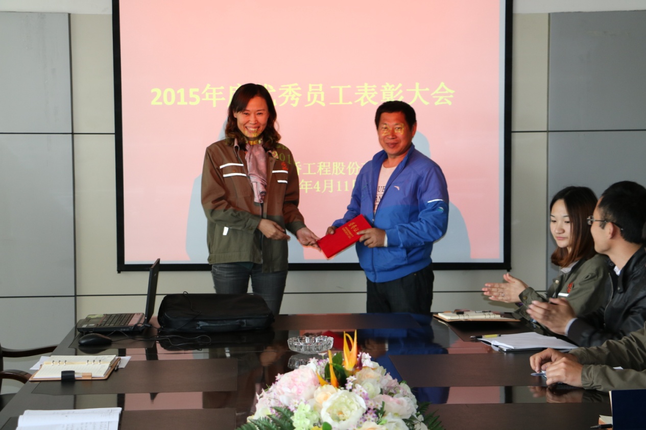 本次表彰大會的舉行是對2015年度為公司發(fā)展做出突出貢獻的“優(yōu)秀員工”的一次獎勵。會議由張永道書記主持。大會第一項由工會主席呂同占宣讀評選結(jié)果,并由出席領(lǐng)導(dǎo)為十二名“優(yōu)秀員工”頒發(fā)榮譽證書和獎金,對他們?nèi)〉玫某煽兘o予了充分的肯定和高度的贊譽,鼓舞全體員工在新的一年里,扎實做好本職工作,爭先創(chuàng)優(yōu),共同進步。大會第二項由“優(yōu)秀員工”代表高國棟發(fā)言:他首先感謝各級領(lǐng)導(dǎo)、同事對他們工作的支持,對公司在過去一年取得的成績感到自豪,這讓他們充滿信心和工作激情。他說道“在今后的工作中,將更加嚴(yán)格要求自己,維護優(yōu)秀員工的形象,揚長避短,繼續(xù)向上,向前,用更加優(yōu)異的成績回報公司領(lǐng)導(dǎo)、同事、親人們的關(guān)心、支持和厚愛”。大會第三項由張永道書記作總結(jié)講話。張書記代表公司向受到表彰的各位同事表示衷心的祝賀,向奮戰(zhàn)在各崗位的同仁致以最真誠的感謝。他表示由于名額的限制,還有許多對公司作出突出貢獻的員工們,不能在此受到表彰,但是,那些默默奉獻的員工同樣值得我們學(xué)習(xí)和贊揚。