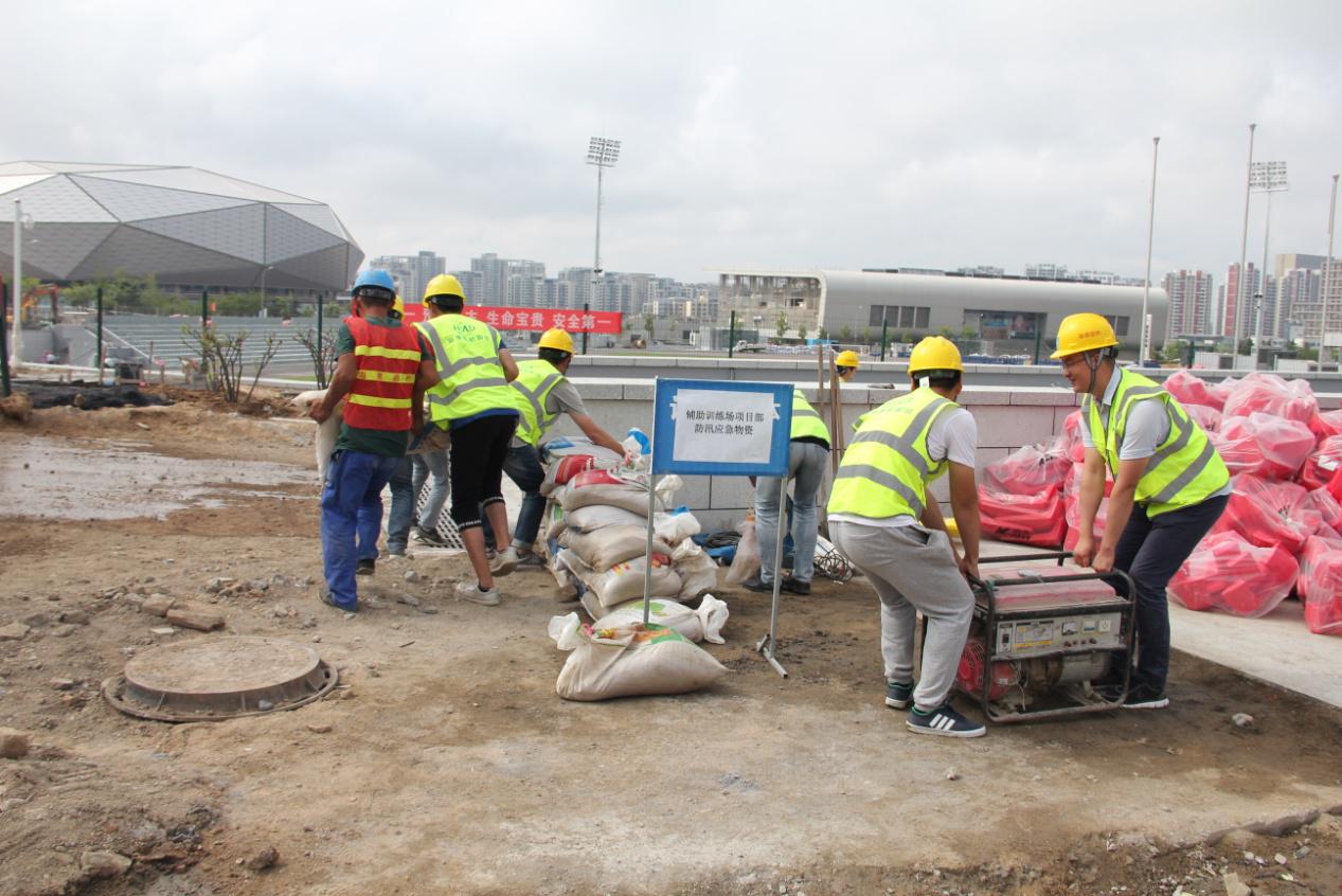 為積極響應(yīng)“安全月”活動,切實加強(qiáng)企業(yè)安全生產(chǎn)工作,提高汛期施工應(yīng)變處理能力,2017年6月23日國信體育中心項目部組織了防汛應(yīng)急演練活動,演練地點設(shè)在國信體育中心輔助訓(xùn)練場項目現(xiàn)場。輔助訓(xùn)練場項目各參建單位、以及其他分公司參加了演練觀摩。