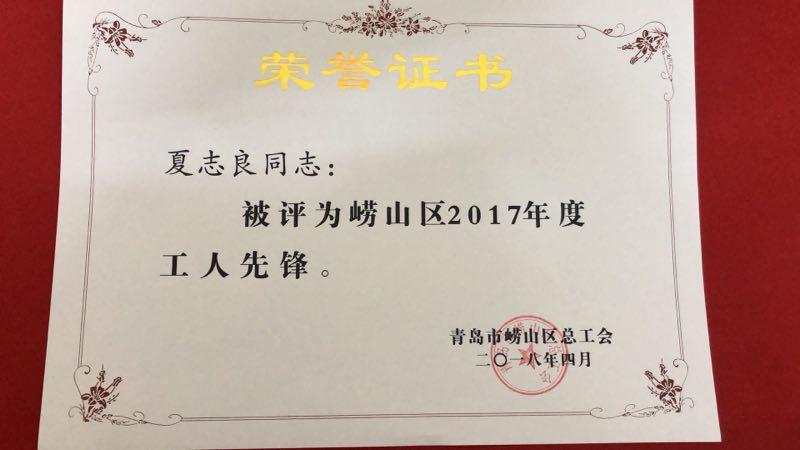 為全面貫徹黨的十九大精神,弘揚(yáng)勞模精神和工匠精神,營(yíng)造勞動(dòng)光榮的社會(huì)風(fēng)尚和精益求精的敬業(yè)風(fēng)氣,嶗山區(qū)總工會(huì)各級(jí)工會(huì)組織積極開(kāi)展創(chuàng)建工人先鋒號(hào)活動(dòng)。在2017年度工人先鋒號(hào)和工人先鋒的評(píng)選中我集團(tuán)公司鄒曉杰項(xiàng)目部榮獲“工人先鋒號(hào)”,夏志良獲評(píng)“工人先鋒”。