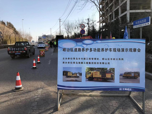 為促進(jìn)城市道路養(yǎng)護(hù)新技術(shù)、新工藝、新設(shè)備的應(yīng)用,提高市政道路養(yǎng)護(hù)水平和養(yǎng)護(hù)施工效率,全面提升市政道路完好指數(shù),確保我市市政設(shè)施良好運行,由青島市市政工程管理處及嶗山區(qū)市政公用局主辦、青島海德工程集團(tuán)股份有限公司承辦,各區(qū)(市)市政管理部門參加的市政道路多功能養(yǎng)護(hù)車現(xiàn)場演示觀摩會,于2019年1月29日青島市嶗山區(qū)科苑緯四路(科苑緯四路與科苑經(jīng)二路交叉口東側(cè))舉行。青島市市政工程管理處司磊處長、劉勇副處長及嶗山區(qū)市政公用局李文局長、曲宏偉副局長、王甜田科長等多位領(lǐng)導(dǎo)出席了觀摩會,青島海德集團(tuán)鞏光磊總裁陪同觀摩,各區(qū)(市)養(yǎng)護(hù)管理部門40多位領(lǐng)導(dǎo)參加觀摩。