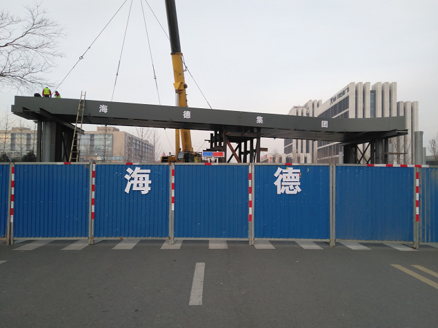本項目位于膠州市新城區(qū)區(qū)繁華地段,施工場地空間有限,周邊居民區(qū)、商業(yè)區(qū)較多,交通流量大;施工期間為降低交通影響,始終與交通主管部門保持溝通,提前發(fā)布交通導行公告,在各路口擺放交通導行牌,并安排專人協(xié)助交警疏導交通。