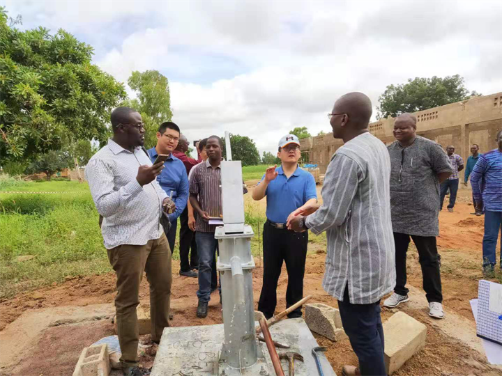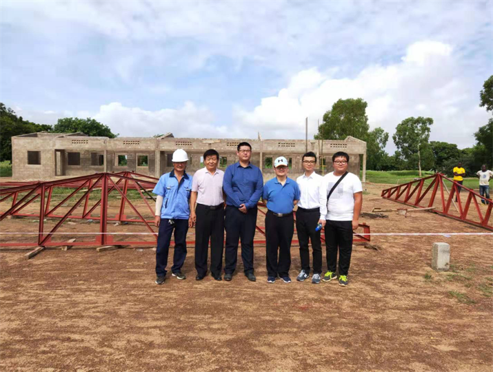 瓦羅部長及李健大使在集團分公司經(jīng)理王勃陽的陪同下,共同視察了ZINIARE小學施工現(xiàn)場,參觀了現(xiàn)場教室及廁所主體,桌椅、鋼結構及水井,對我集團的施工質量和進度給予高度的認可。
