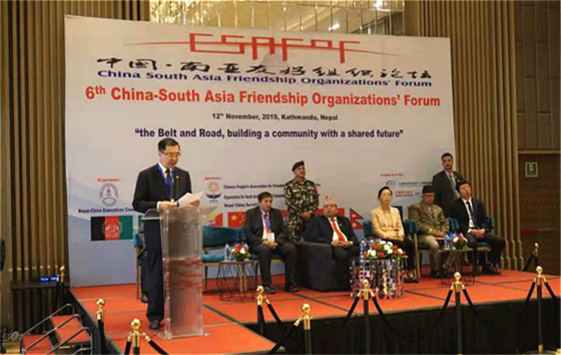 11月11日至13日,集團(tuán)總裁鞏光磊隨青島代表團(tuán)訪問尼泊爾。11月12日上午, 第六屆中國?南亞友好組織論壇在尼泊爾加德滿都舉行。尼泊爾副總統(tǒng)阿達(dá)巴哈杜爾?普恩、全國對外友協(xié)副會長林怡、尼泊爾外交部聯(lián)合秘書博卡瑞爾、南亞中國友好組織輪值主席阿努伯?巴塔拉伊、青島市人大常委會主任宋遠(yuǎn)方及南亞7個(gè)國家組織負(fù)責(zé)人和中國6個(gè)省市的地方代表約100人出席了大會,我集團(tuán)總裁隨青島市代表團(tuán)出席論壇開幕式。