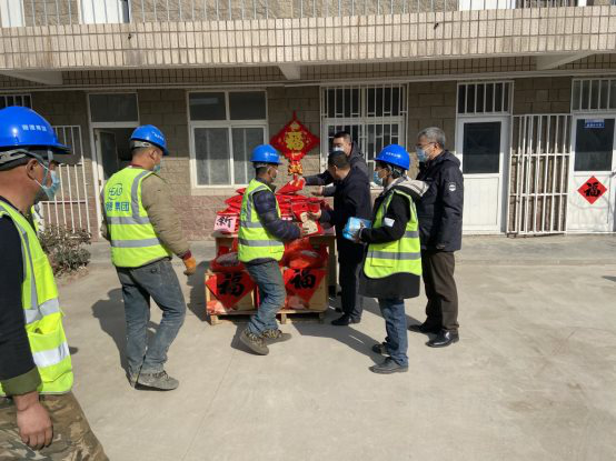 大年三十上午,集團董事長鞏光磊,集團副總裁、工會主席呂同占,集團副總裁程顯光、安全管理部總經(jīng)理王蘭濤及代建單位負責人單總,特地對春節(jié)期間堅持在工作崗位上的員工、工人致以節(jié)日的祝福,并送上春節(jié)慰問品,又強調(diào)了春節(jié)期間施工的安全管理及防疫措施。