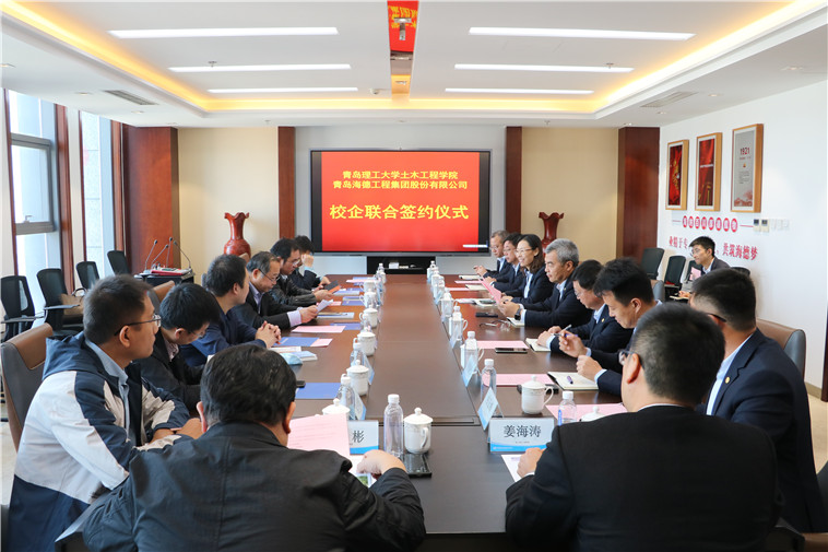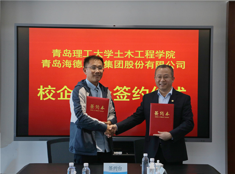 2021年10月25日上午10時(shí),青島理工大學(xué)土木工程學(xué)院與青島海德工程集團(tuán)股份有限公司“土木水利專業(yè)學(xué)位研究生聯(lián)合培養(yǎng)基地”校企合作簽約儀式在集團(tuán)總部會(huì)議室隆重舉行。