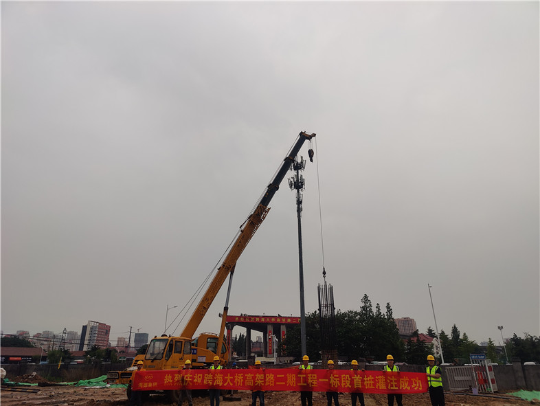 2022年6月14日21時38分,由我集團二分公司負責施工的跨海大橋高架路二期工程一標段首樁成功澆筑,打響了全線施工的第一槍,標志著該工程進入主體施工階段。