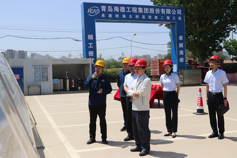 會上,集團(tuán)董事長鞏光磊先向盧英方會長介紹了公司發(fā)展歷程以及主要項目情況。隨后盧英方會長一行到集團(tuán)承建的跨海大橋高架路二期項目、東岸產(chǎn)業(yè)園區(qū)基礎(chǔ)設(shè)施綜合改造項目,聽取了項目總體概況、工程亮點及施工進(jìn)度的匯報,盧英方會長首先對集團(tuán)公司的發(fā)展速度及取得的成績給予高度肯定,并贊揚(yáng)了項目施工工藝、質(zhì)量,隨后結(jié)合項目實際情況,提出了寶貴的指導(dǎo)意見。