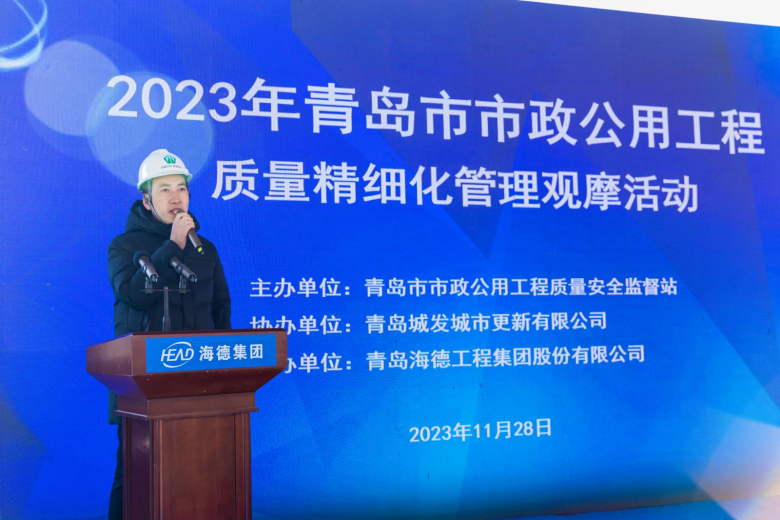 為充分發(fā)揮項目全要素質(zhì)量精細(xì)化管理標(biāo)桿示范引領(lǐng)作用,進(jìn)一步提升全市市政公用領(lǐng)域精細(xì)化管理水平,推動市政基礎(chǔ)設(shè)施建設(shè)健康發(fā)展,11月28日,由青島市市政公用工程質(zhì)量安全監(jiān)督站主辦,青島城市發(fā)展集團有限公司協(xié)辦,集團公司承辦的2023年青島市市政公用工程質(zhì)量精細(xì)化管理觀摩活動在我集團承建的重慶路快速路工程4標(biāo)段施工現(xiàn)場舉行,青島市市政公用工程質(zhì)量安全監(jiān)督站、各區(qū)(市)市政公用工程質(zhì)量安全監(jiān)督機構(gòu)相關(guān)負(fù)責(zé)同志、青島城市發(fā)展集團有限公司,全市在建市政項目建設(shè)、施工、監(jiān)理企業(yè)代表100余人參加了此次活動。