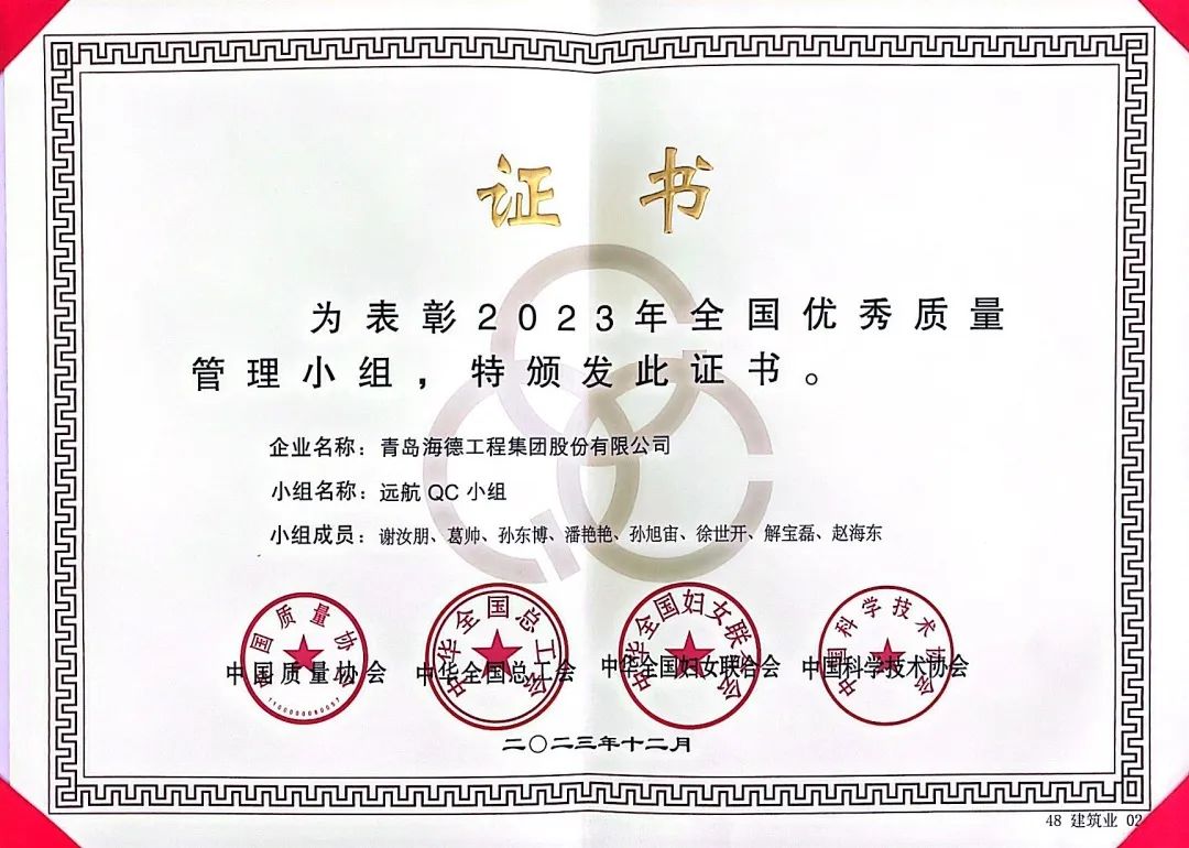 近日,集團(tuán)公司“遠(yuǎn)航”QC小組一路披荊斬棘,通過層層篩選,從全國百萬個(gè)QC小組中脫穎而出,榮獲“2023年全國優(yōu)秀質(zhì)量管理小組”稱號?!叭珖鴥?yōu)秀質(zhì)量管理小組”評選活動(dòng)是由中國質(zhì)量協(xié)會(huì)、中華全國總工會(huì)、中華全國婦女聯(lián)合會(huì)、中國科學(xué)技術(shù)協(xié)會(huì)聯(lián)合舉辦,每年一次,是我國QC小組的最高榮譽(yù)。