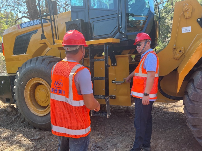 在項目部考察期間,集團董事長鞏光磊對項目前期營地建設、破碎站安裝調試、石料選址開采、施工機械維護保養(yǎng)等方面的工作表示了肯定,要求項目部充分做好開工前的準備工作,加大設備物資管理力度,進一步完善工作計劃,將各項工作做實、做細,全力迎接接下來的施工生產任務,確保按時保質完成施工計劃。集團董事長鞏光磊詳細了解了項目部員工的工作生活情況,對大家的辛苦付出表示感謝,希望大家能夠在項目經理的帶領下,團結一致,齊心協(xié)力,干出“海德”精神,打造“海德”品牌。同時,集團董事長鞏光磊強調,大家身處異國他鄉(xiāng),無論是工作還是生活,一定要把安全放在首位,抓緊安全不放松。
